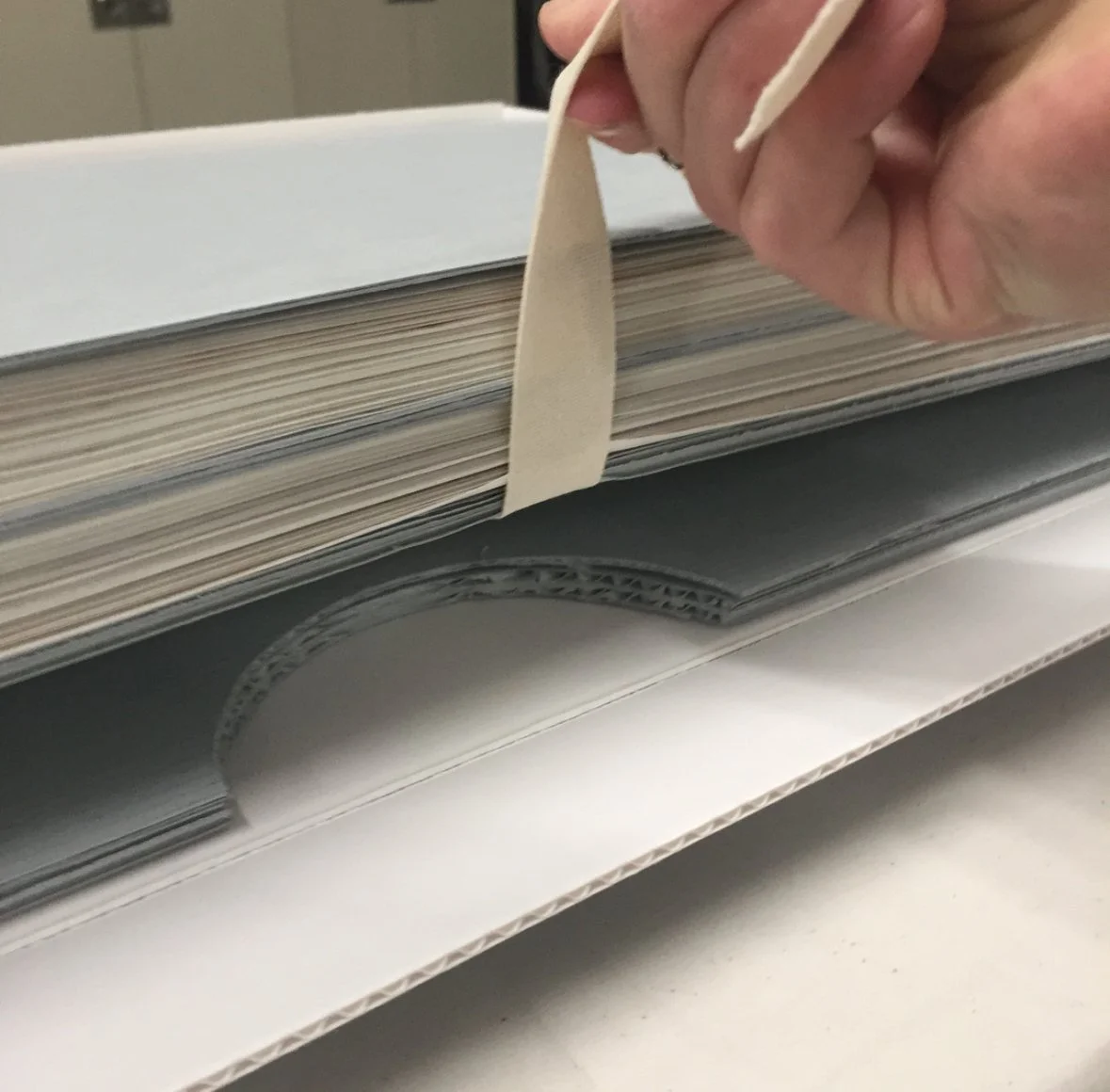 Archival corrugated blue board is an excellent alternative to the more costly traditional clamshell. Clamshell boxes offer more protective solution, and can be customized appropriately to your desired color.
